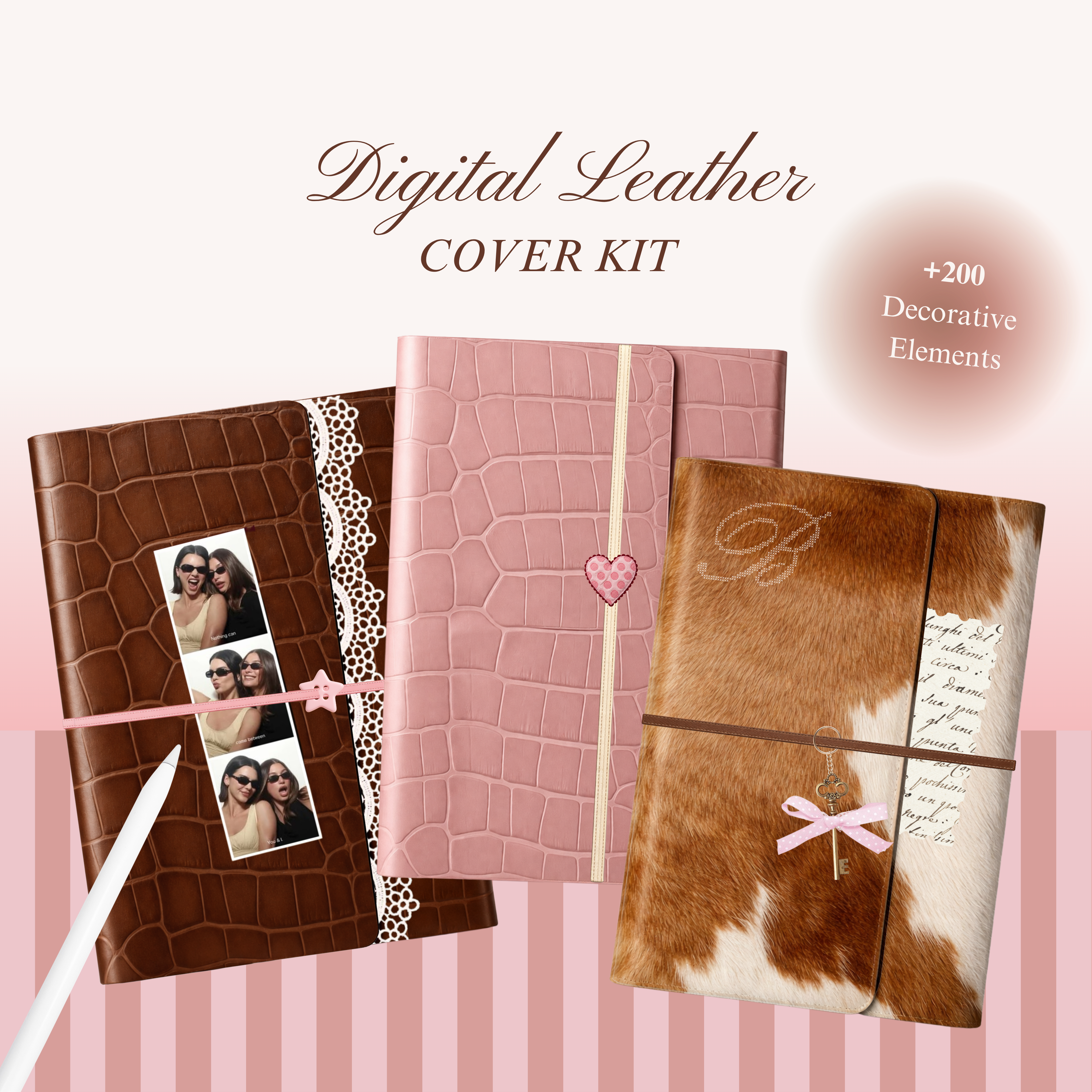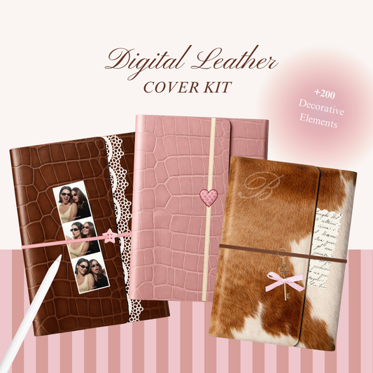 Design your own realistic leather planner covers with a fully customizable kit — made for iPad, GoodNotes, and aesthetic digital planning.