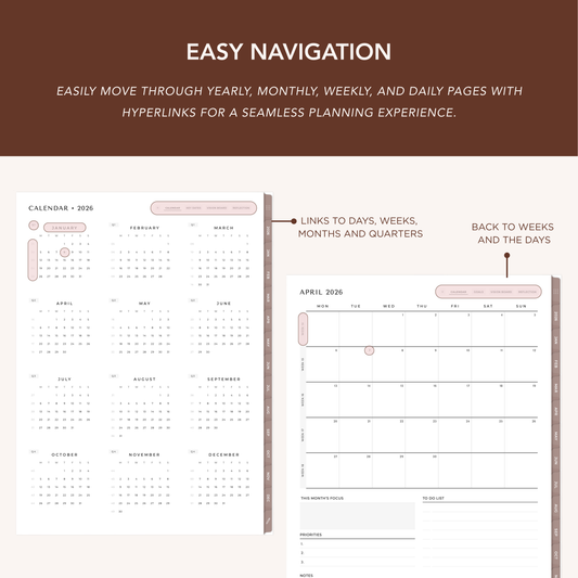 Stay organized with a clean, fully hyperlinked digital planner designed for clarity, focus, and effortless planning on iPad.