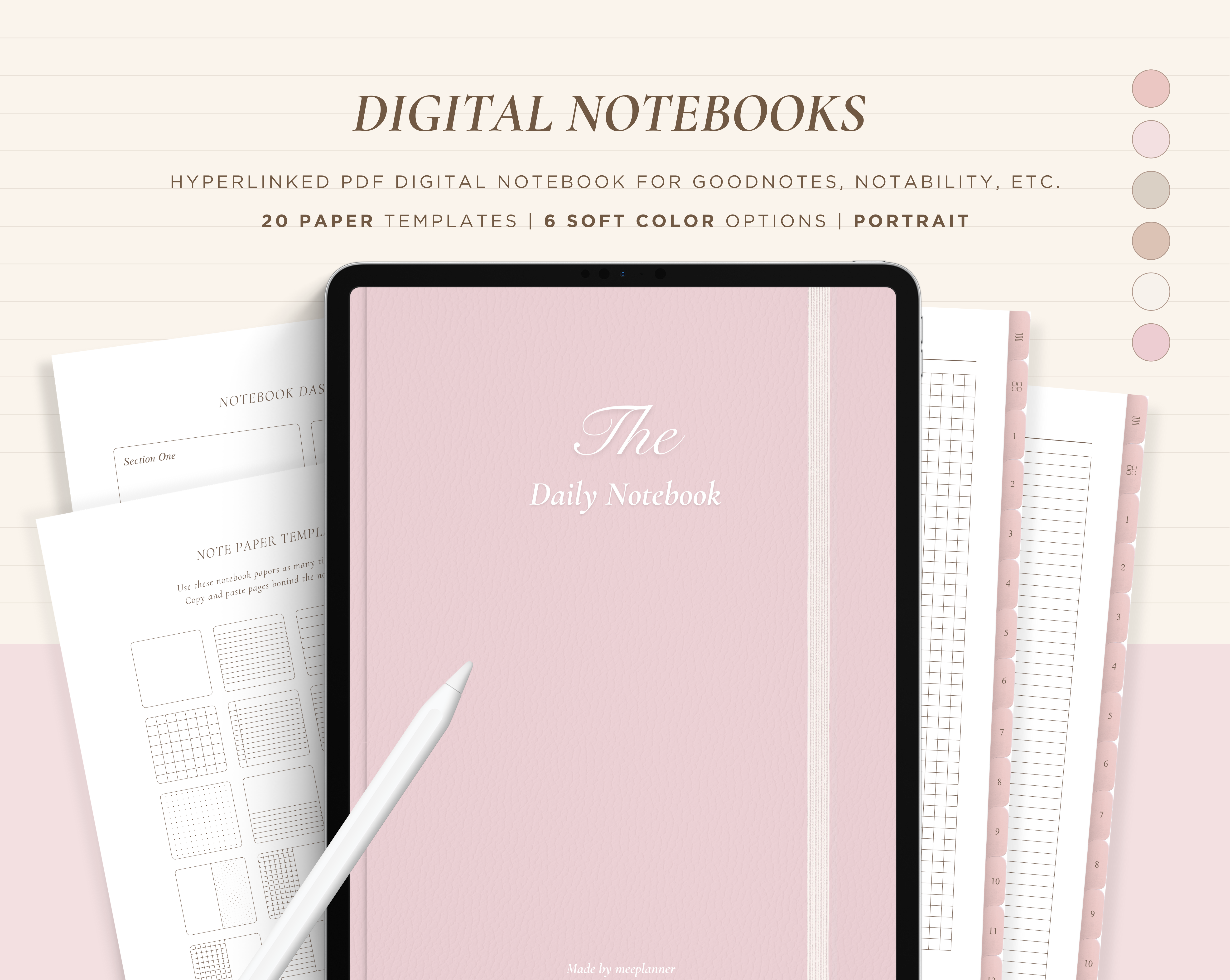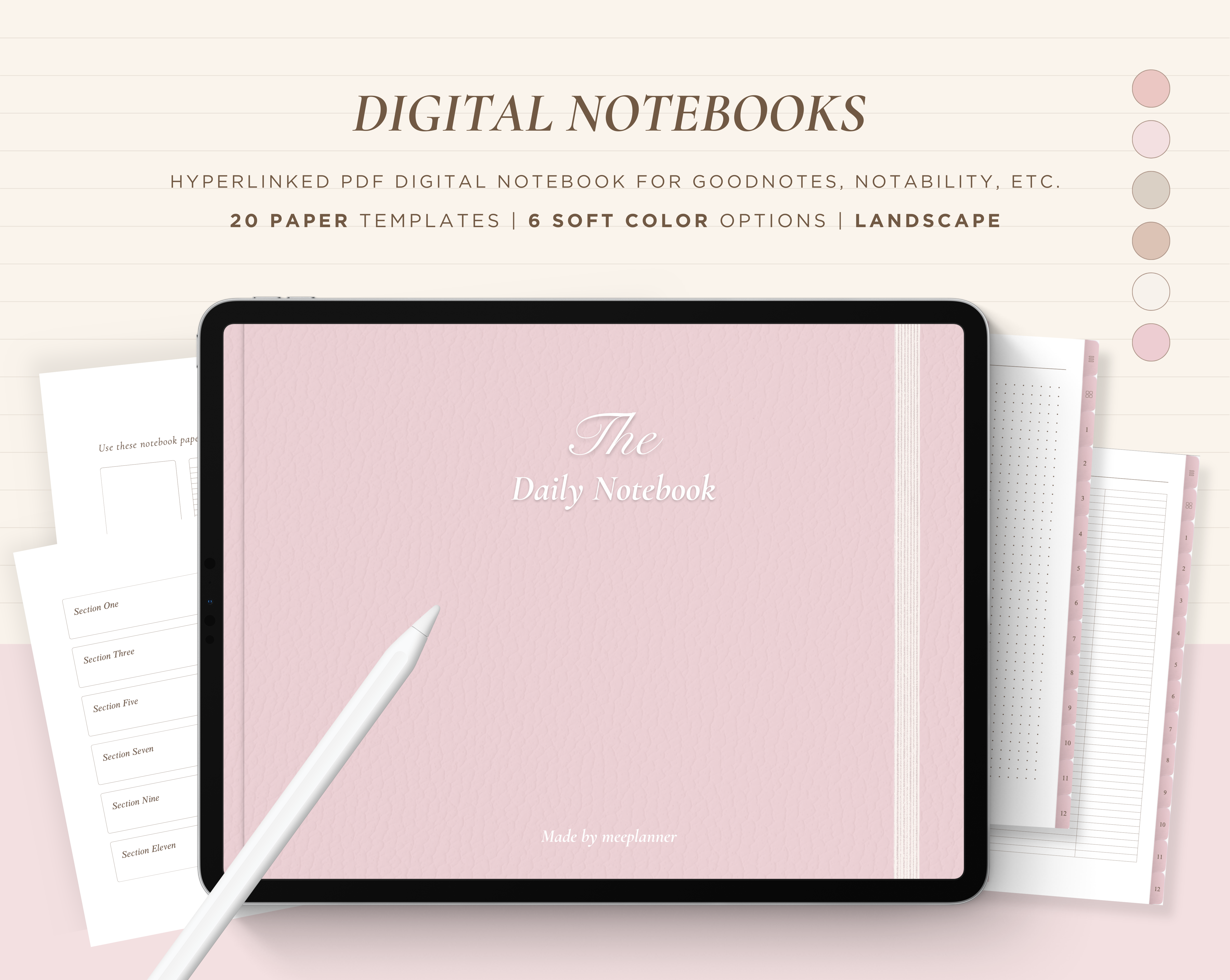 12 Subject Digital Notebooks | Bundle Landscape & Portrait | 6 Soft Colors