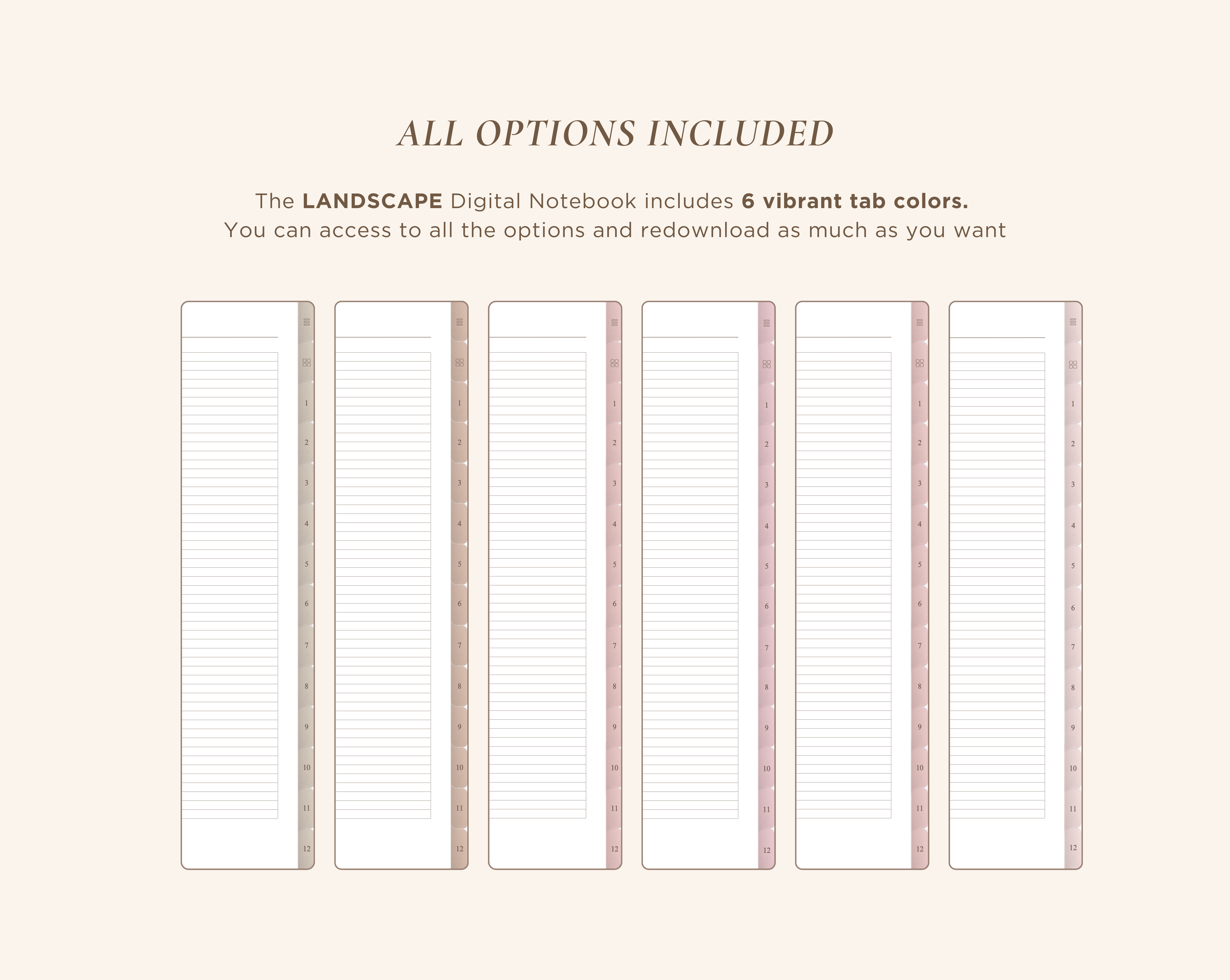 12 Subject Digital Notebooks | Landscape | 6 Soft Colors