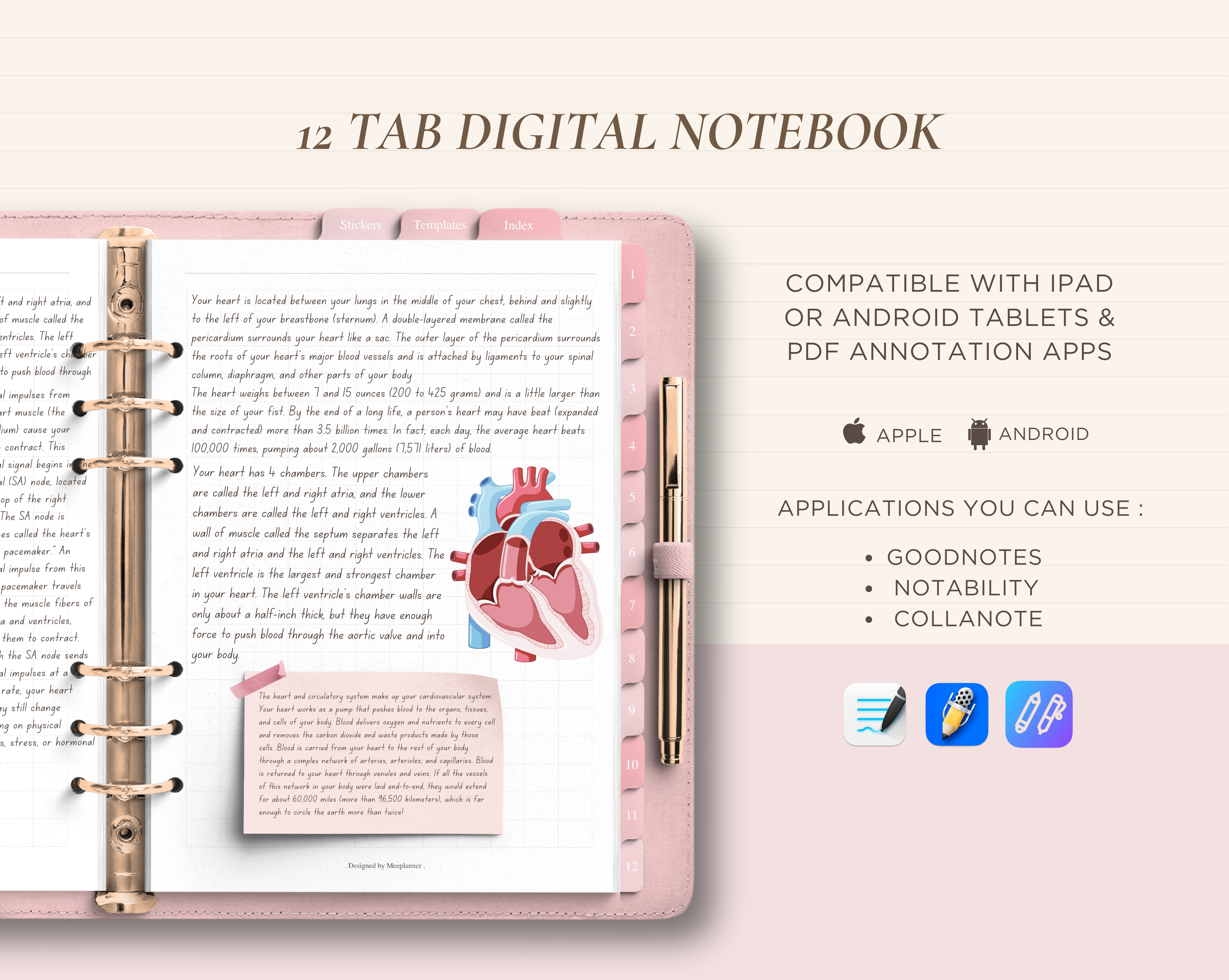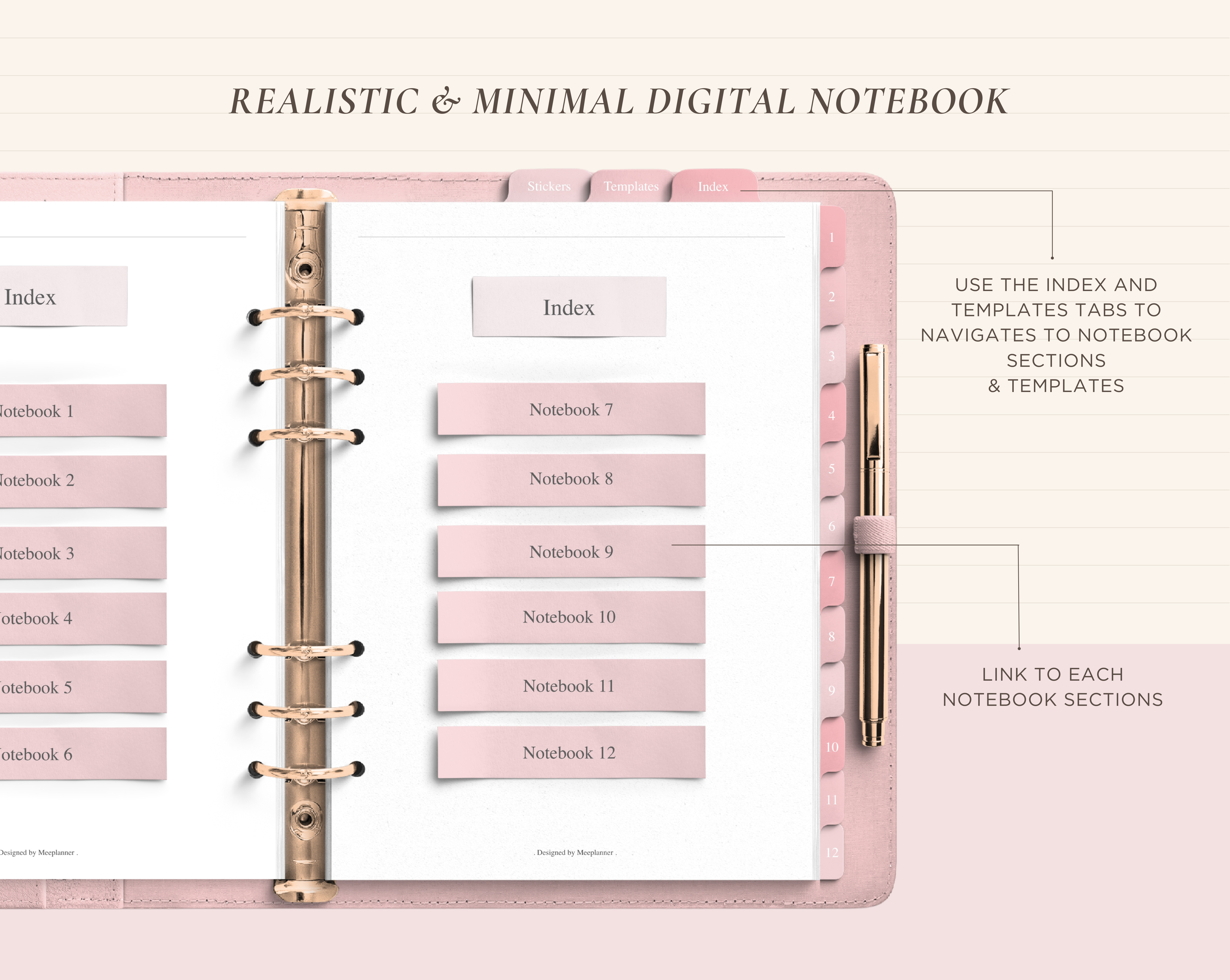 Stay organized andTrack your progress with realistic 12 tabs digital notebook. Perfect for college students, professionals, or anyone seeking a versatile and convenient way to capture ideas.