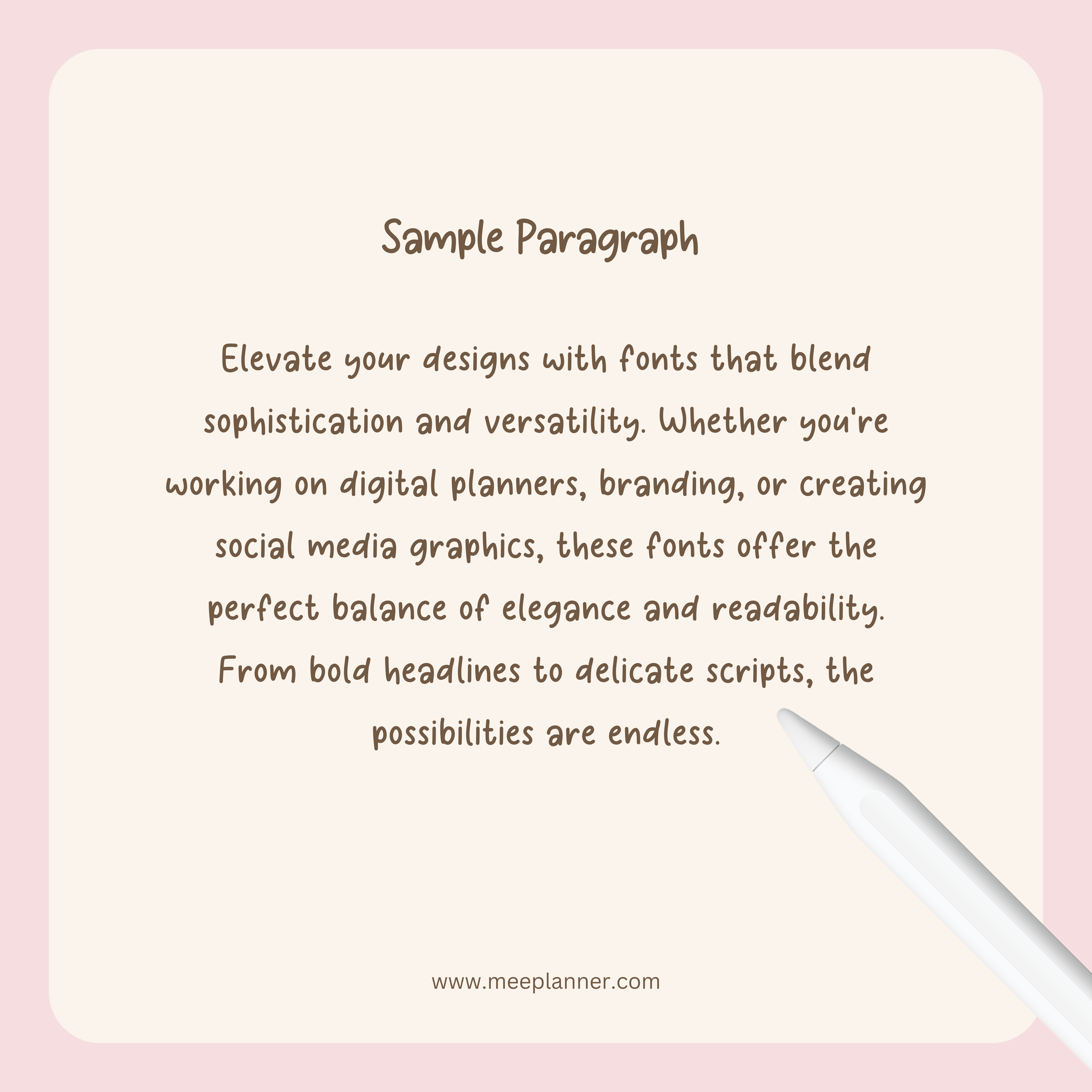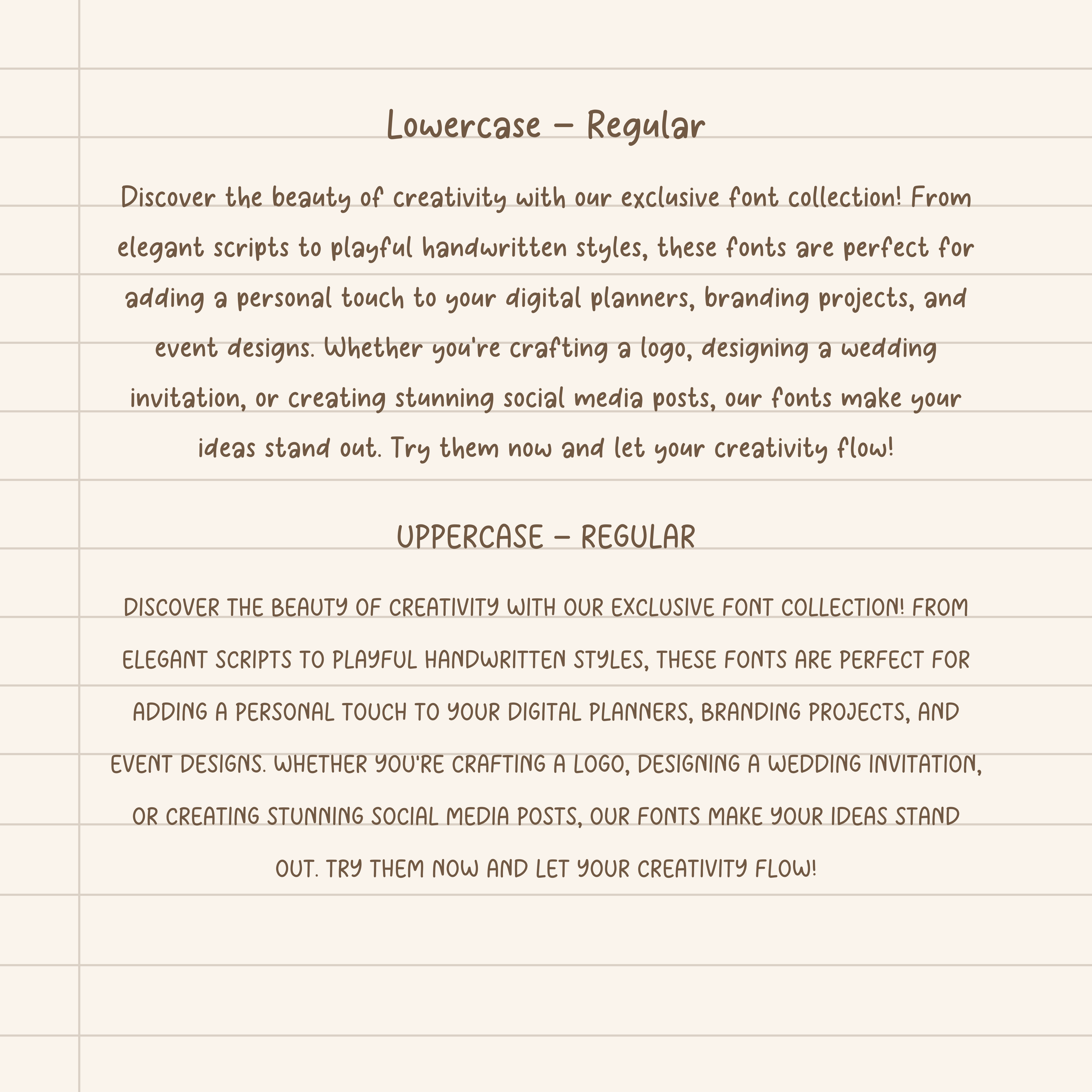 Add a personal and natural touch to your digital planners, notes, and journals with this cozy handwritten font. Designed to look authentic and feel effortless, it's perfect for all your creative projects.