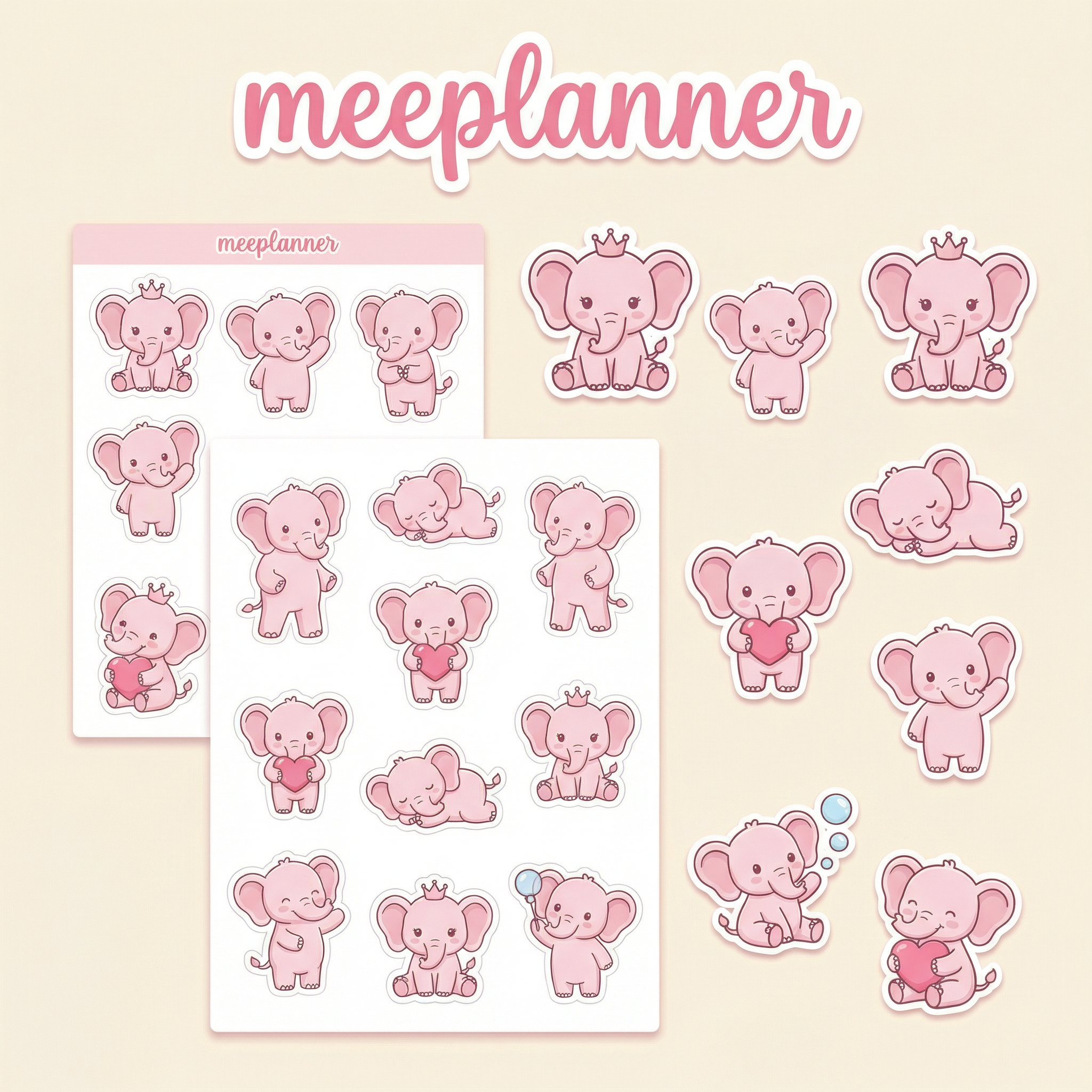 🖼️ Jumbo Miu Jiu Sticker: One oversized Miu Jiu Elephant sticker with hearts — perfect as a cover page decoration, dashboard accent, or just because she's too cute to keep small.